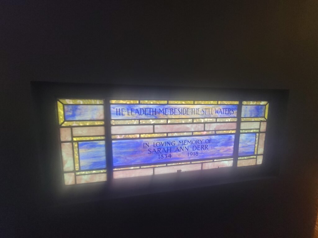 The second window memorialized Sarah Ann Derr, who lived eighty-four years—from 1834 to 1918.