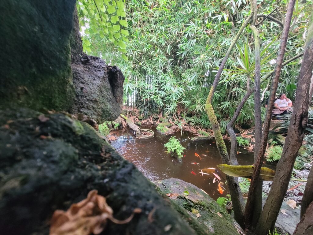 You know, I always try to look at the positive in everything. And when you walk into Ott’s, you step out of the Pennsylvania cold and right into a tropical rainforest. It’s this enormous complex, established way back in the 70s, and it’s filled with life. There’s a two-story indoor waterfall, a koi pond, and all these amazing palms, ferns, and orchids. It felt like we were instantly transported.