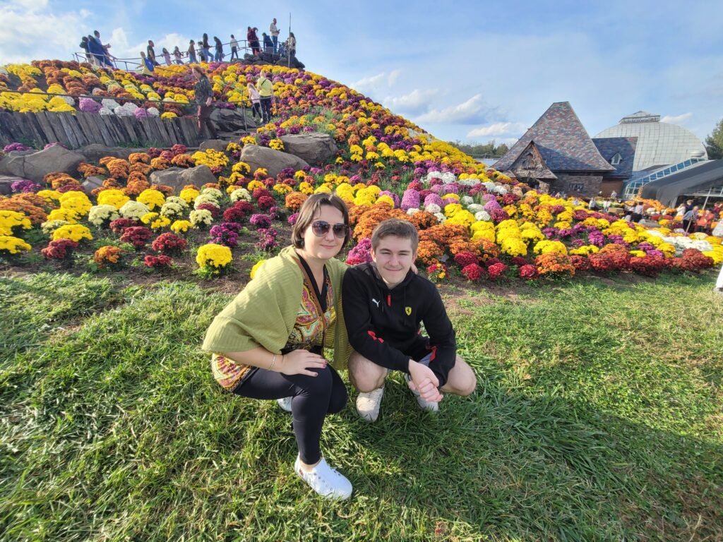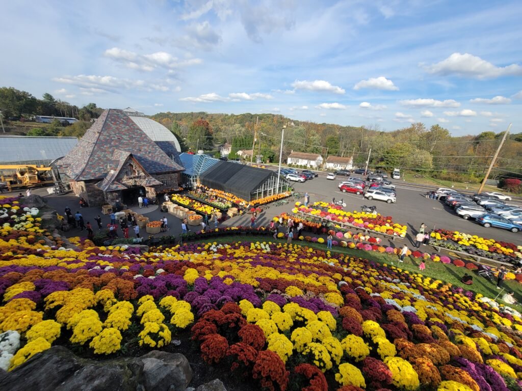 During autumn, Ott’s builds this incredible floral display—a forty-foot mountain of chrysanthemums. I’m talking six to ten thousand mum plants, all stacked up. You can climb to the top of it!